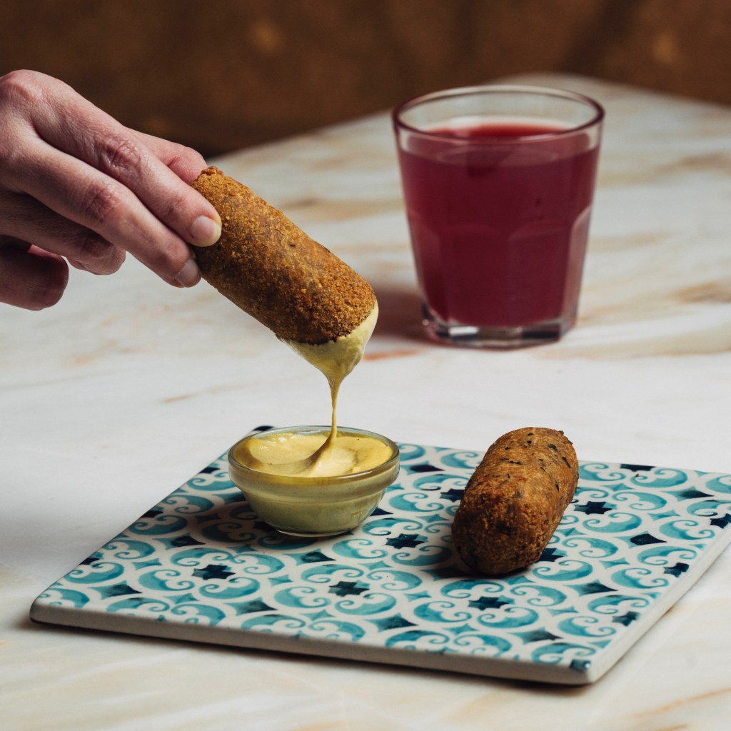 À receita tradicional do croquete de carne adicionamos o sabor da mostarda Dijon.