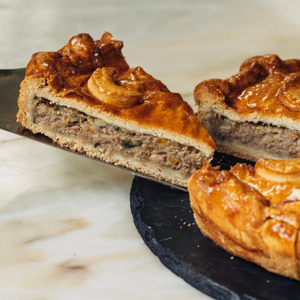 Pato estufado com uma mistura de especiarias e laranja envolto em massa quebrada.
