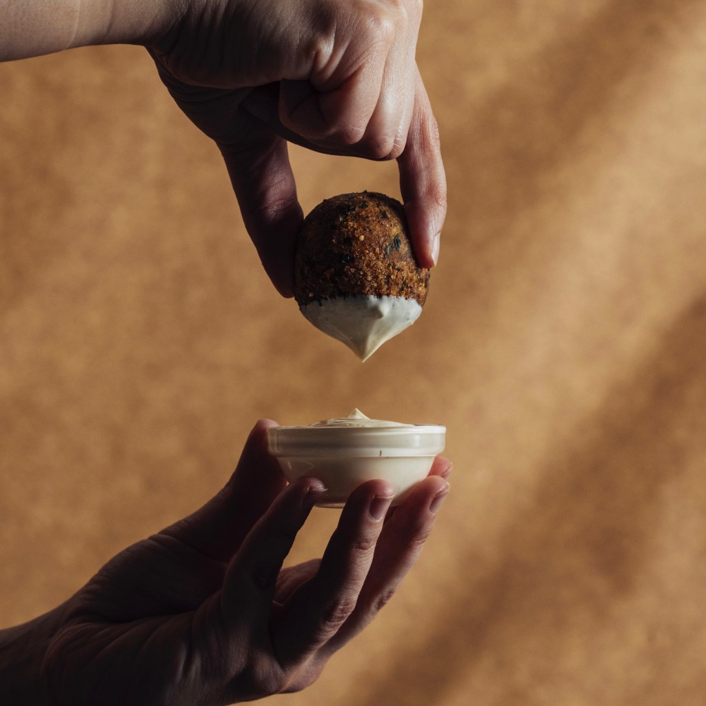 O croquete vegetariano, com espinafres frescos e o aroma da noz moscada.