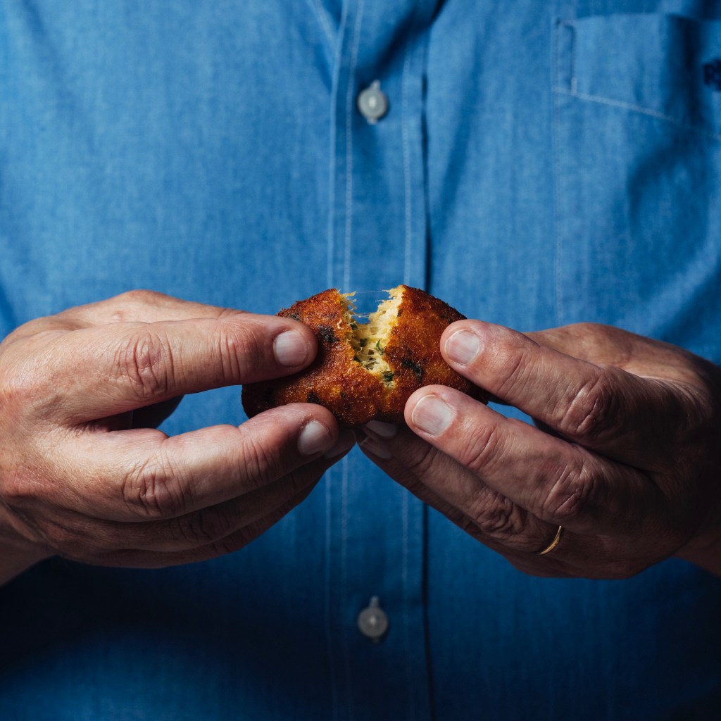 Fofas mas densas com lascas de bacalhau no interior.