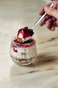 Cheesecake de Frutos Vermelhos, Mousse de Chocolate, Mousse de Maracujá, Doce da Casa, Gelatina Tricolor e Salada de Frutos.